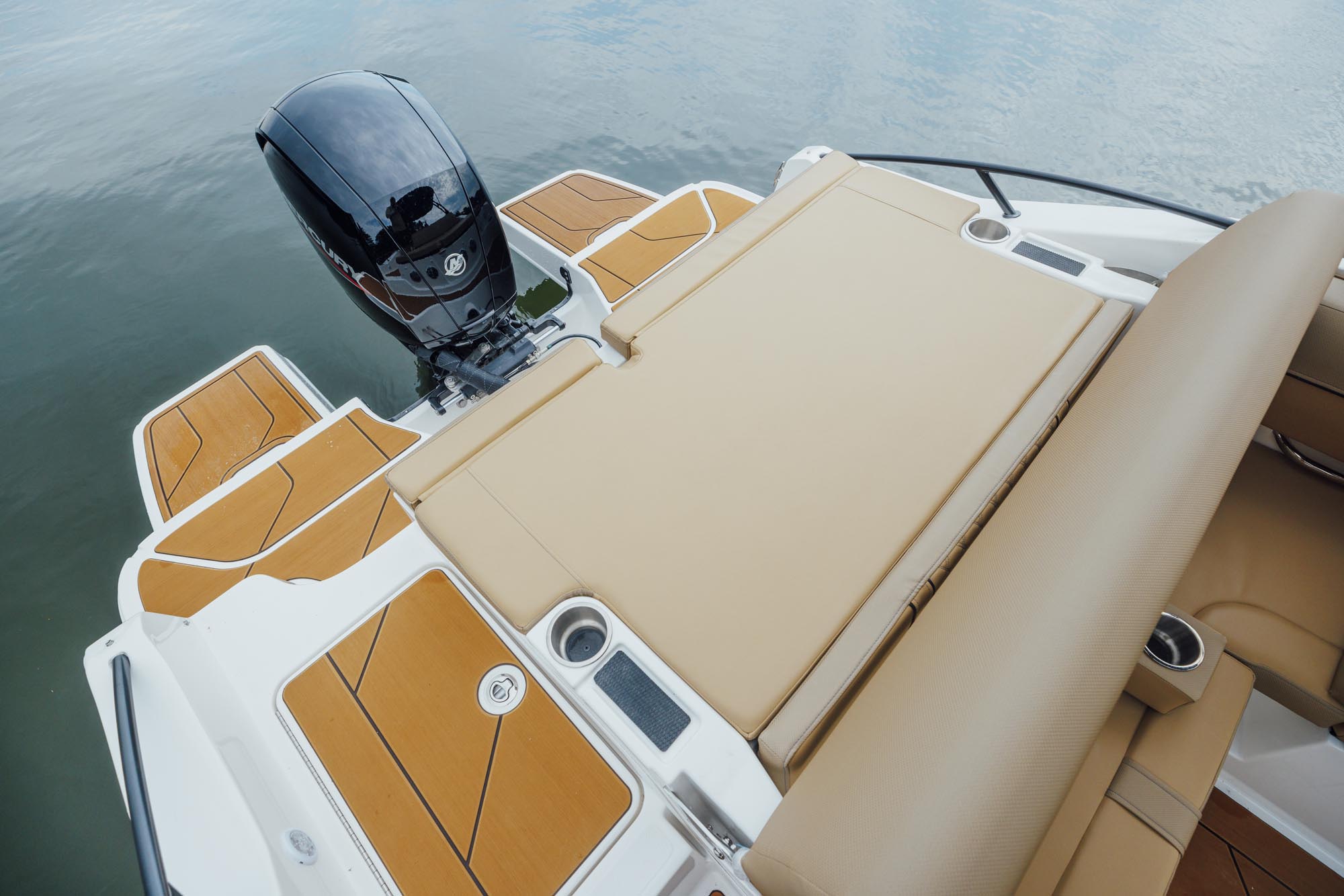 The D20I is here to make a splash! With a sleek new hull design, the D20I is ready to turn heads on the water. We've upgraded the exterior to give the boat the facelift it deserved. But don't worry, we've kept all the interior features you know and love, like the luxurious upholstery, ample storage space, and a cozy aft lounger for ultimate comfort. Get ready to experience the best of both worlds with the D20I.