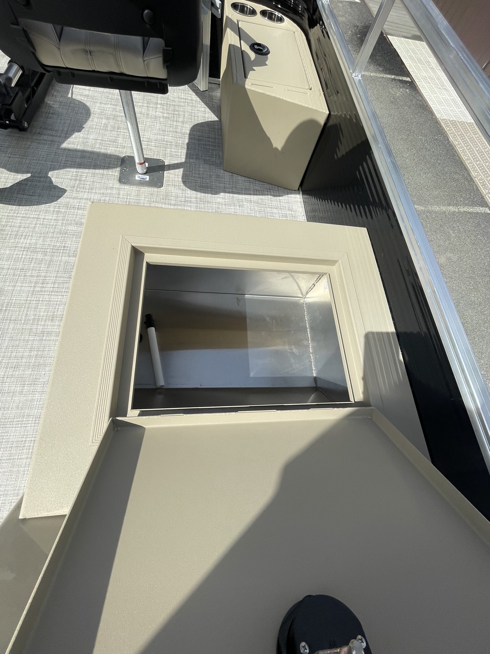 Storage compartment (starboard side of the bow) with two cupholders
