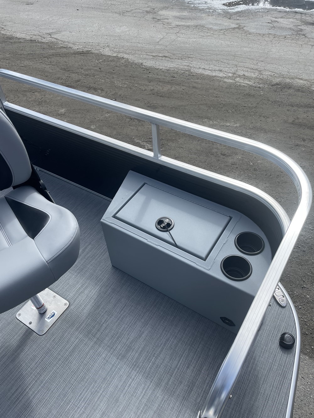 Storage compartment (starboard side of the bow) with two cupholders