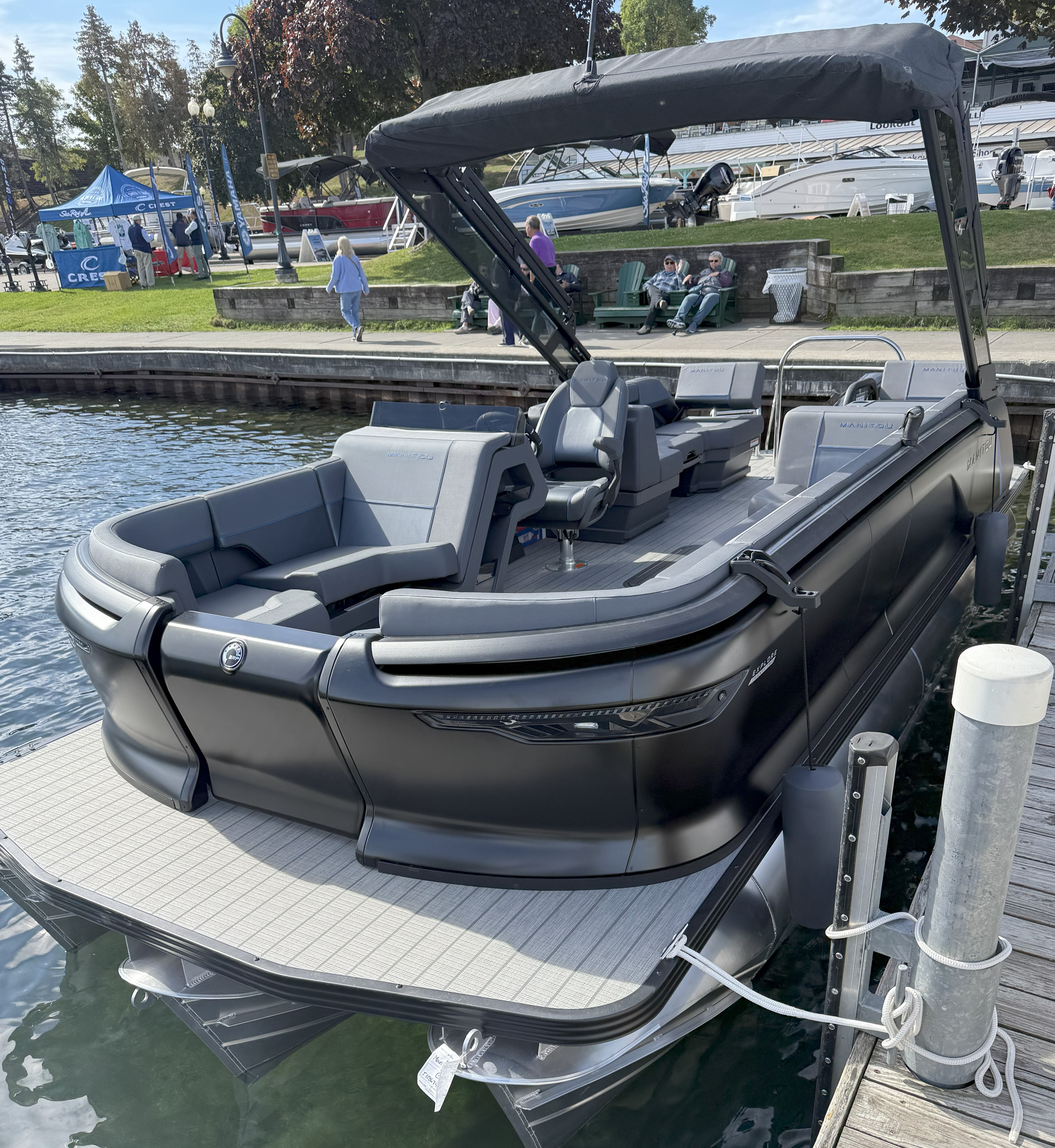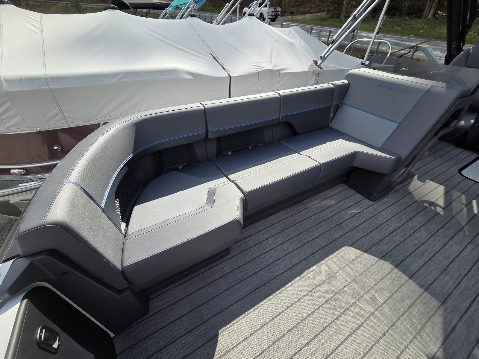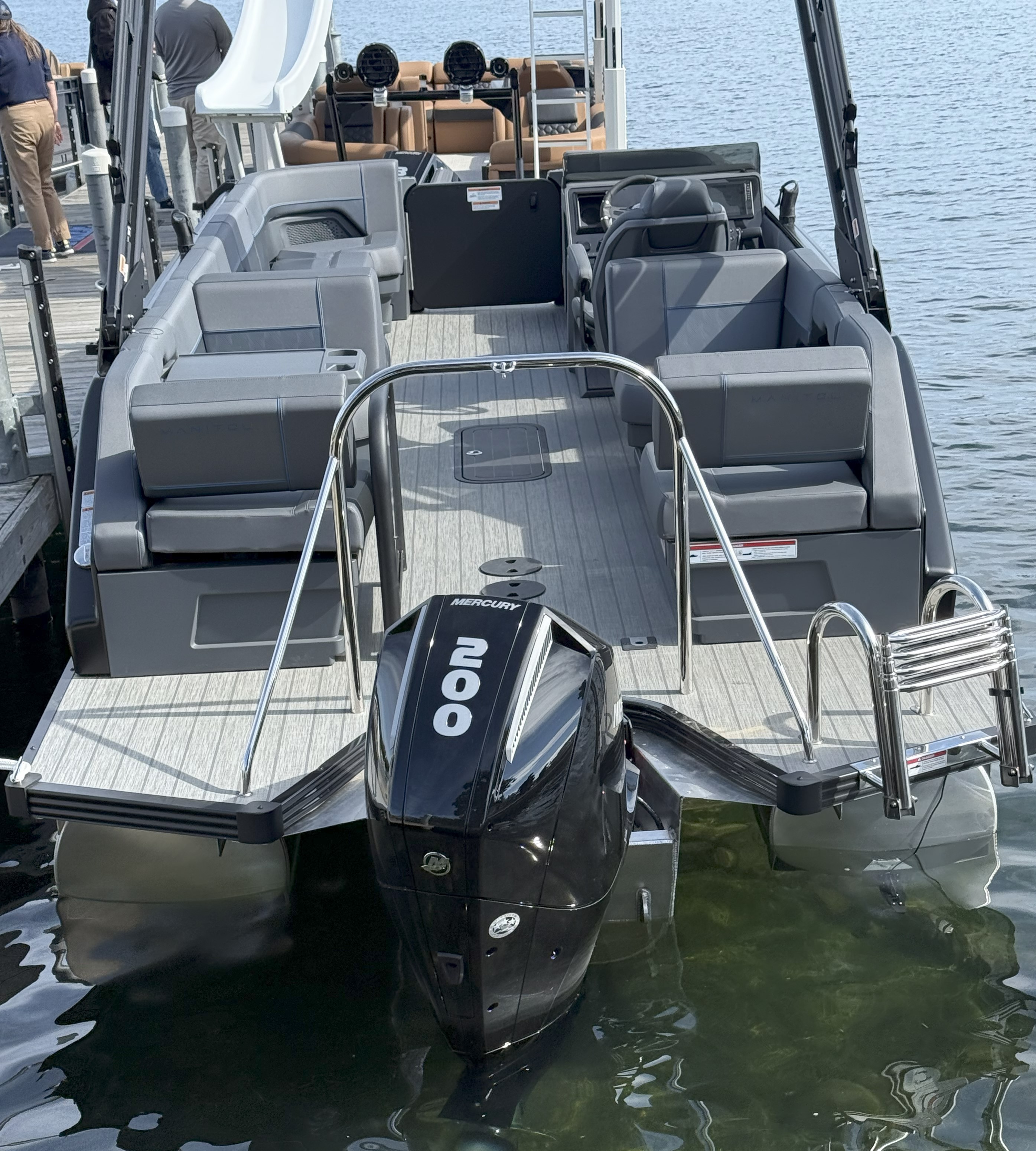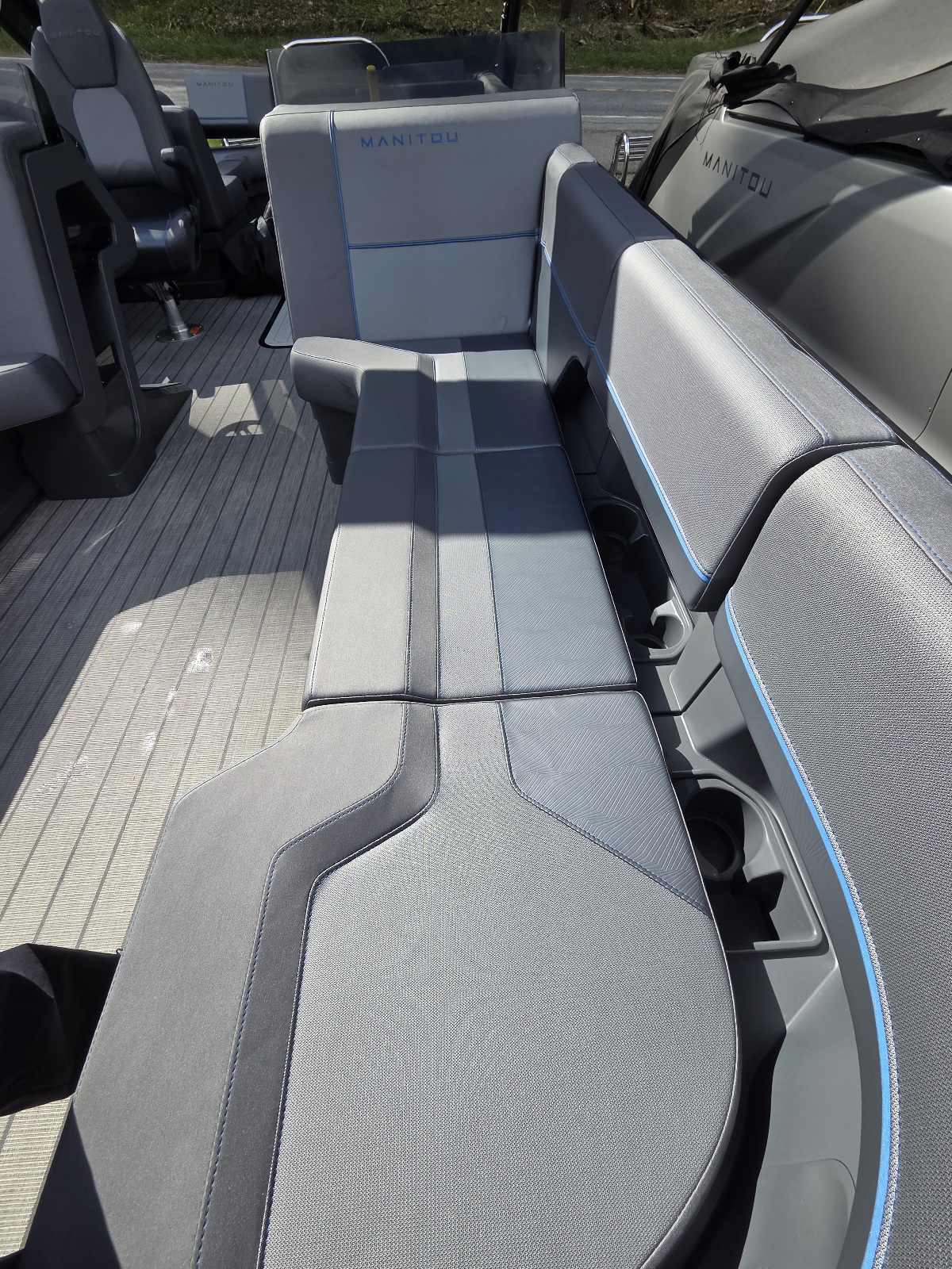 This classic Manitou layout seats up to 13 in comfort and style. You'll enjoy upgrades such as the 4-speaker Clarion stereo upgrade, wireless charging, and LED lighting. Top it all with the sport power bimini, and you'll be riding in style this season.