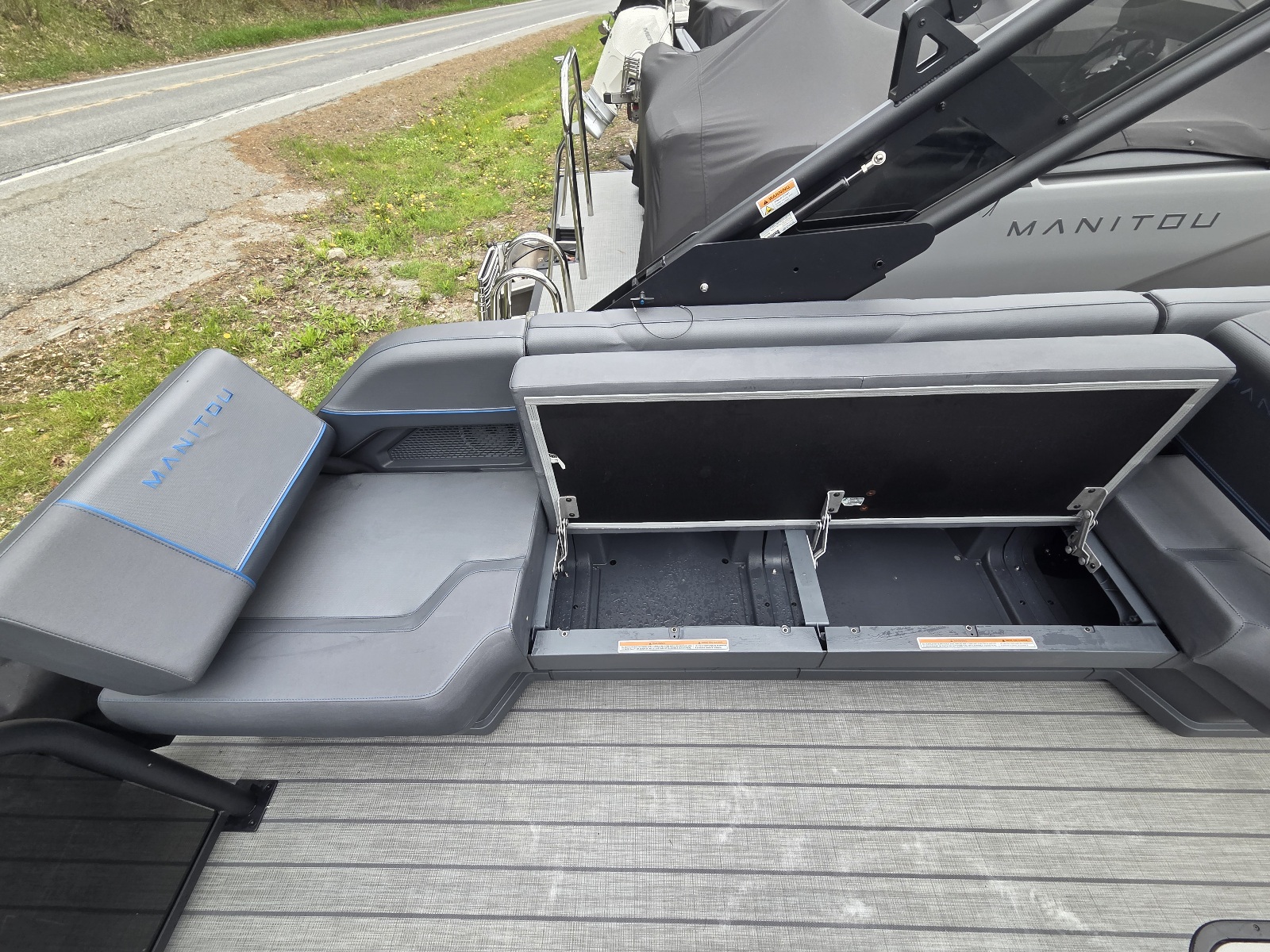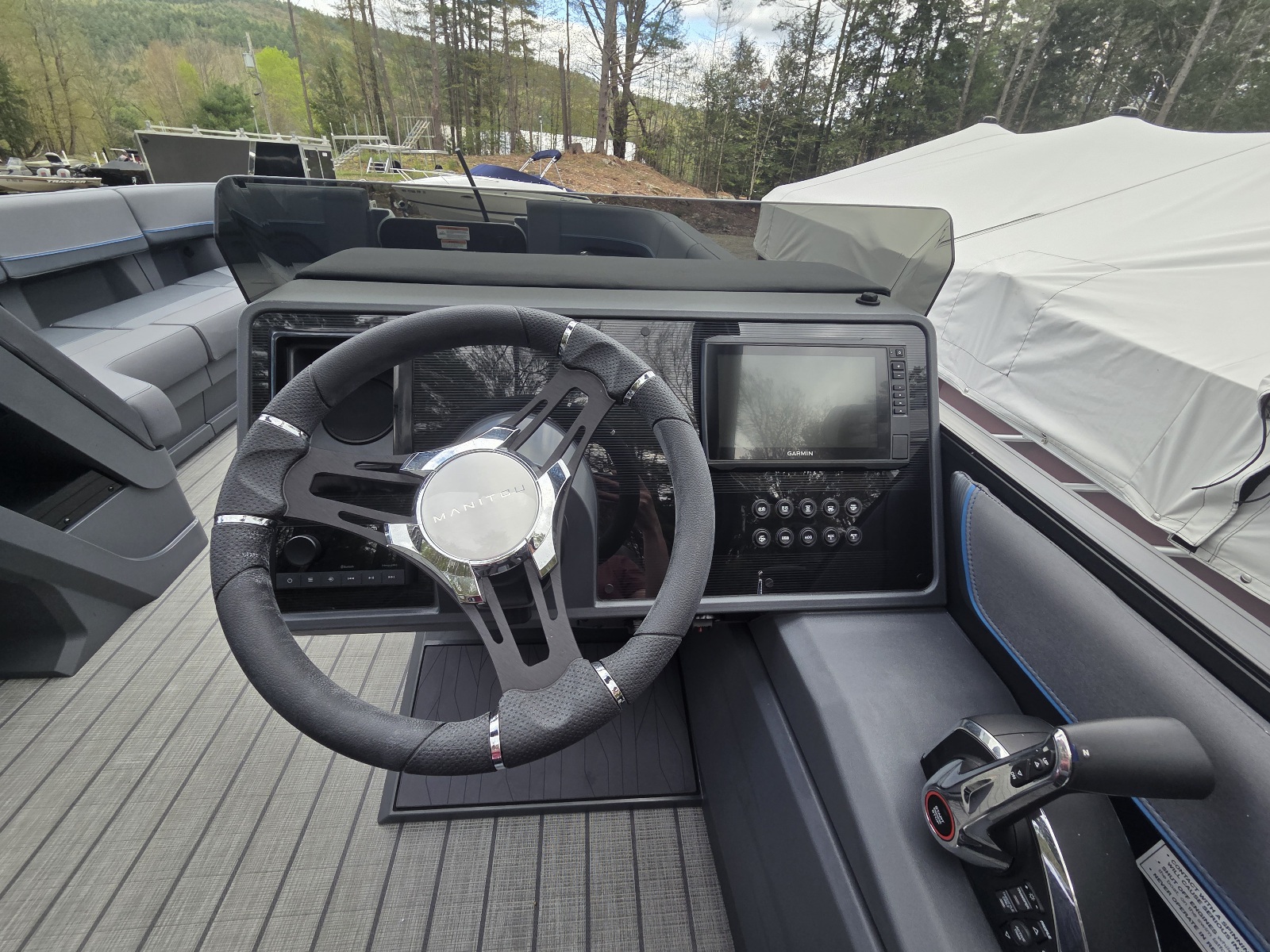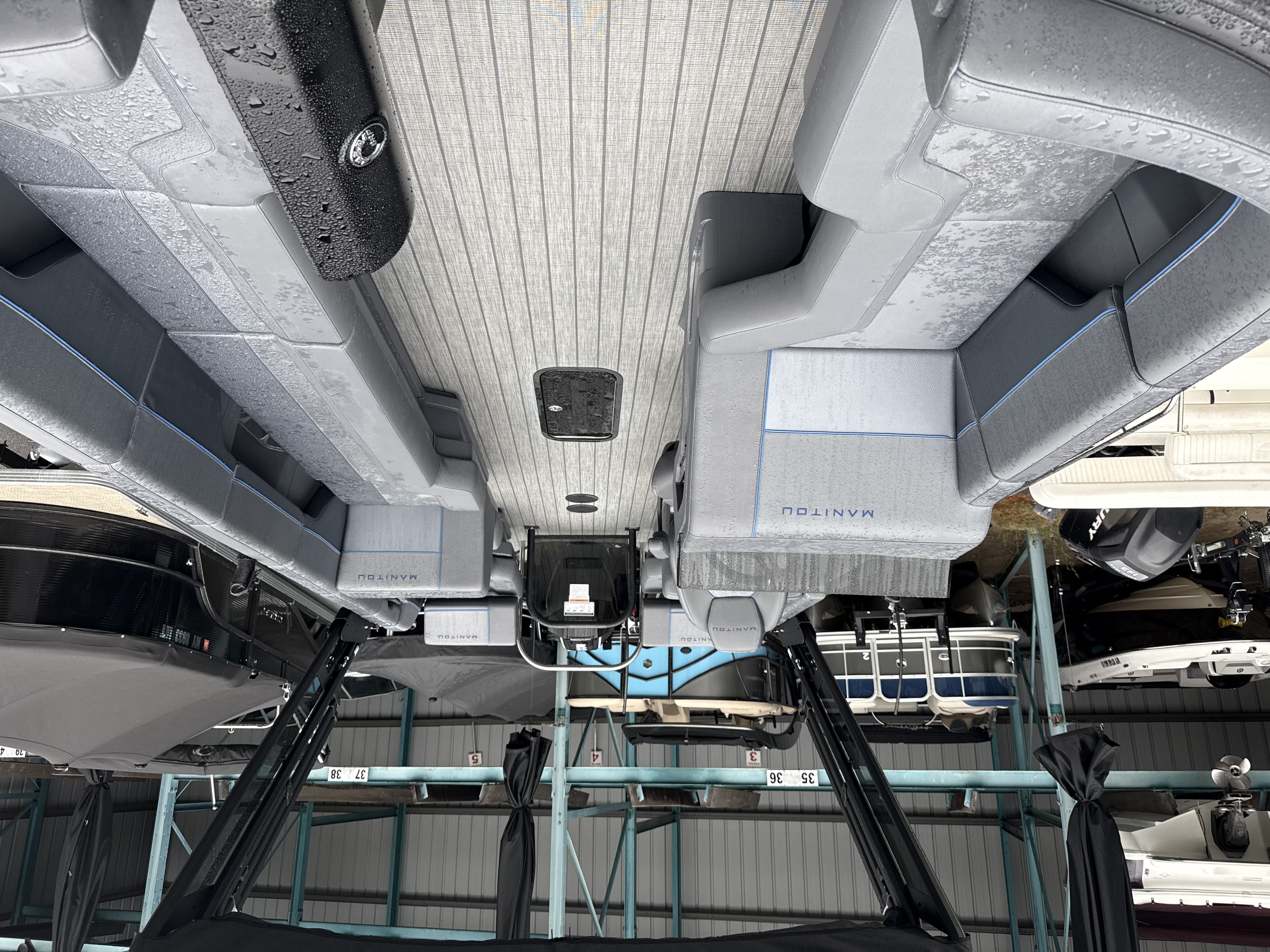 This classic Manitou layout seats up to 13 in comfort and style. You'll enjoy upgrades such as the 4-speaker Clarion stereo upgrade, wireless charging, and LED lighting. Top it all with the sport power bimini, and you'll be riding in style this season.