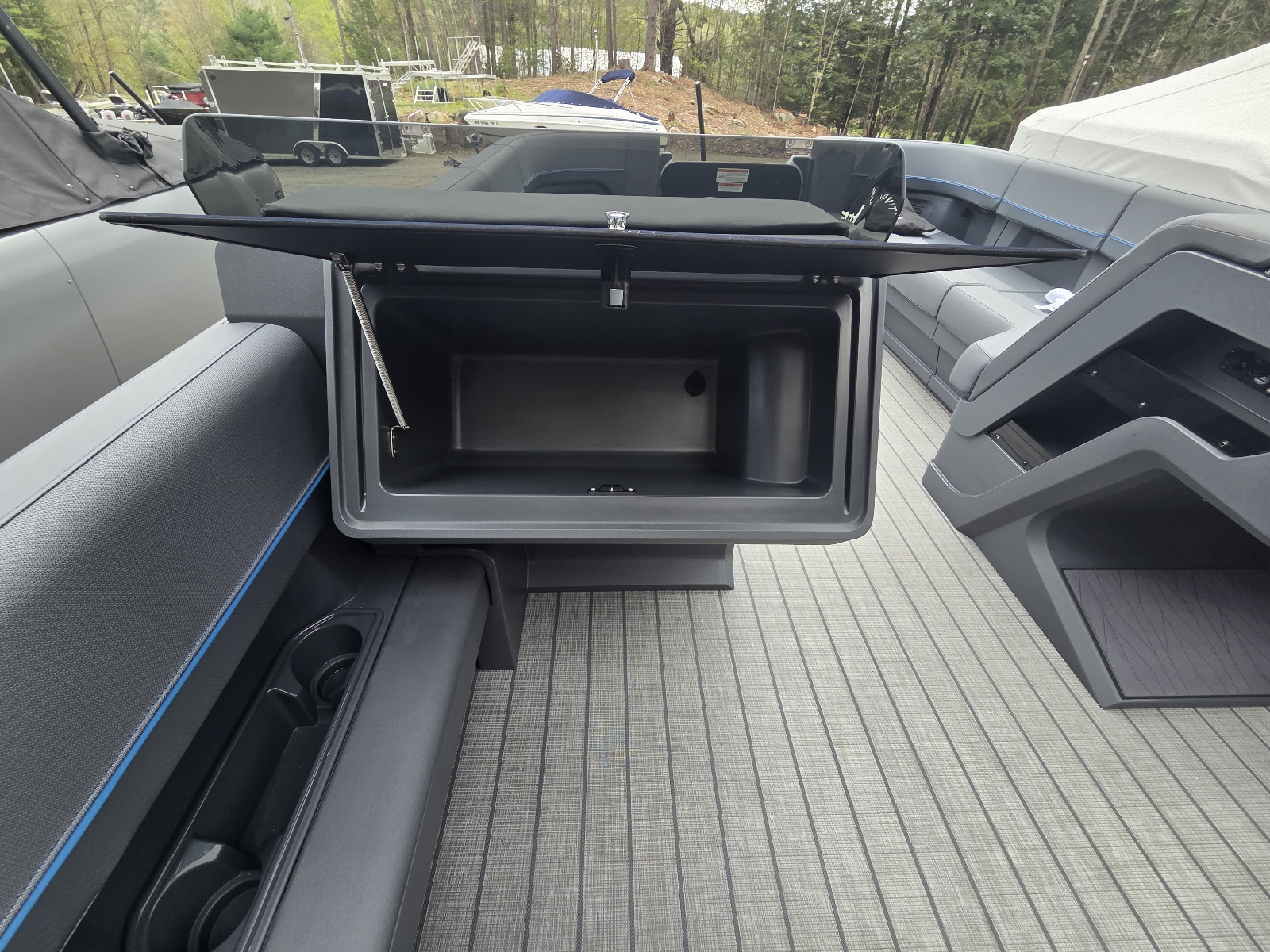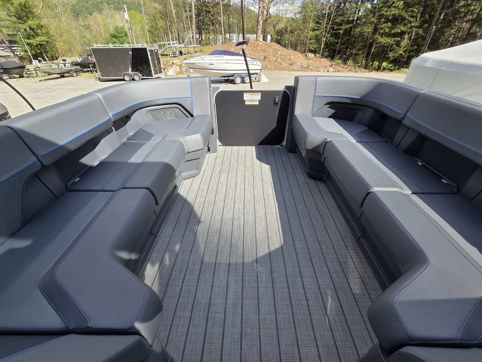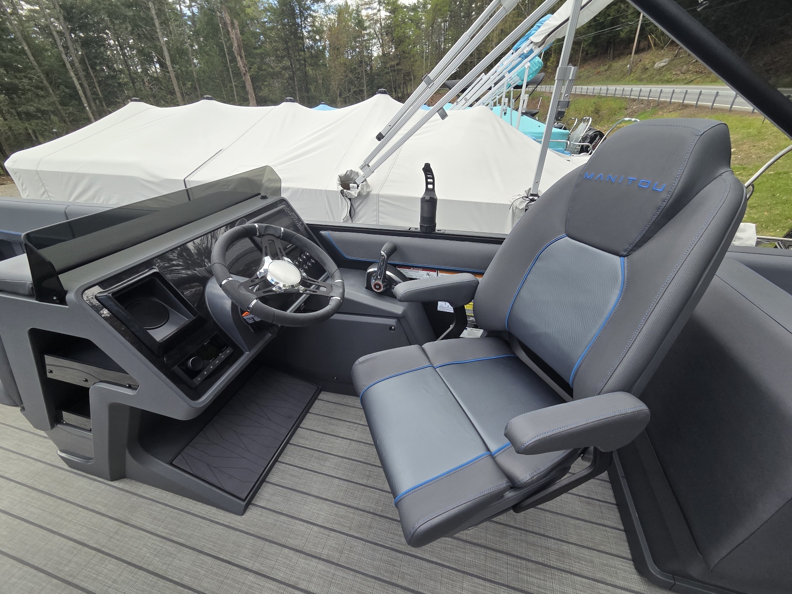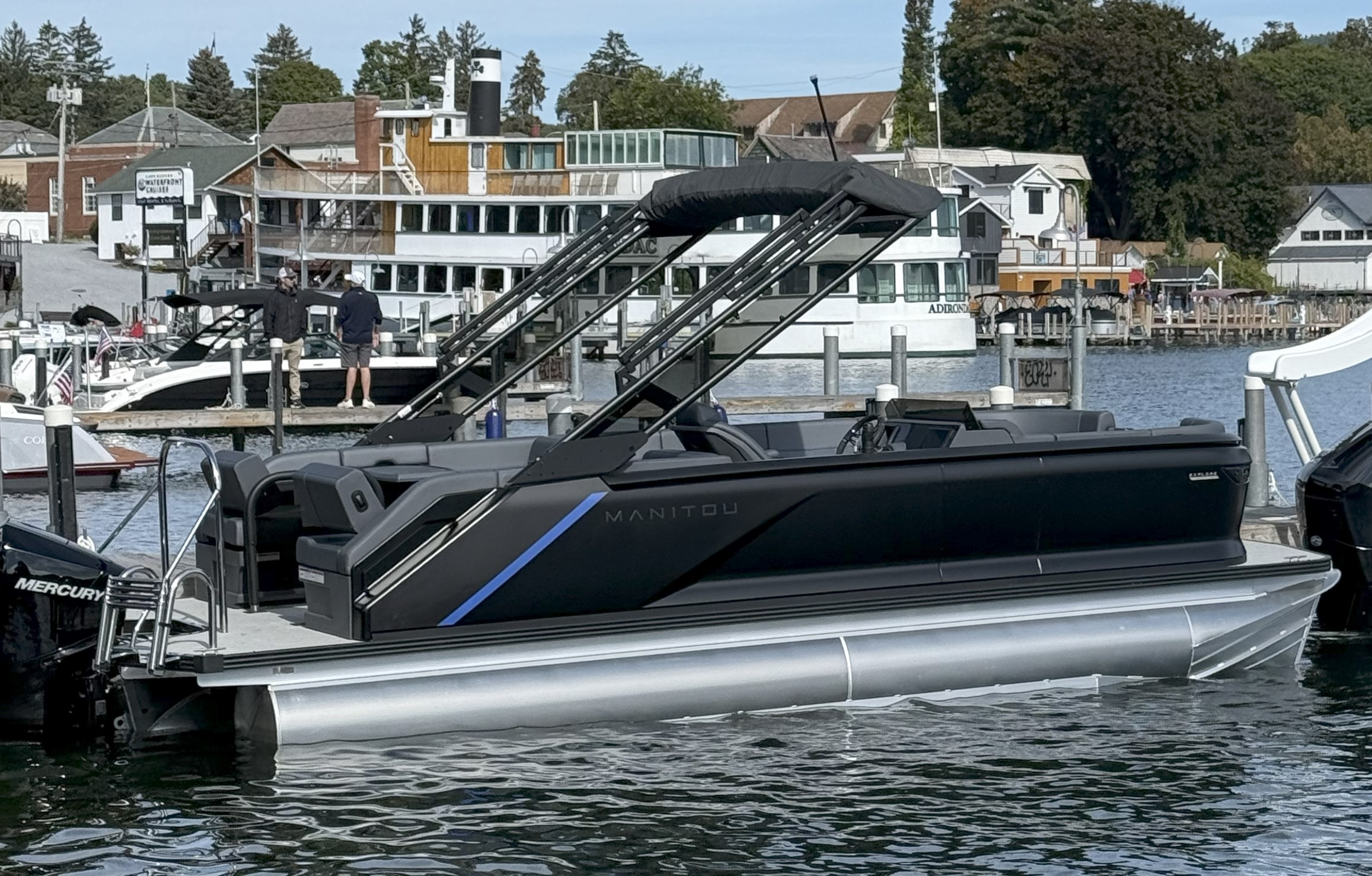 This classic Manitou layout seats up to 13 in comfort and style. You'll enjoy upgrades such as the 4-speaker Clarion stereo upgrade, wireless charging, and LED lighting. Top it all with the sport power bimini, and you'll be riding in style this season.