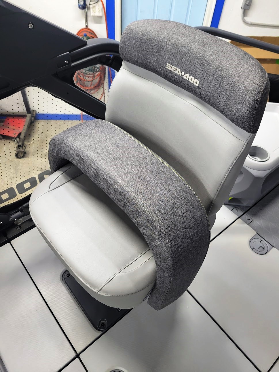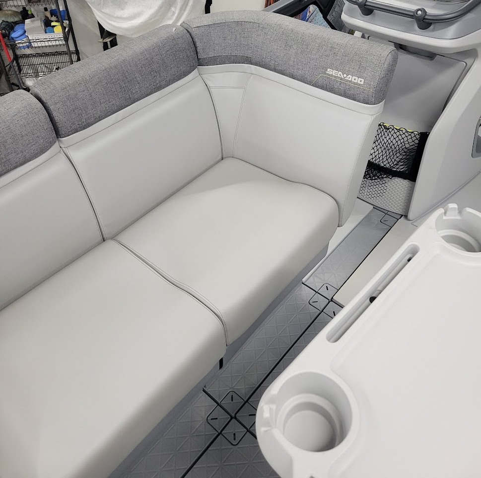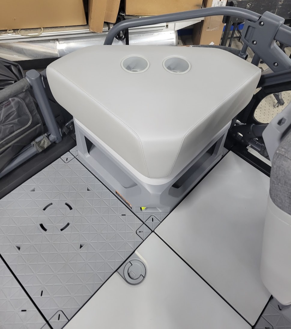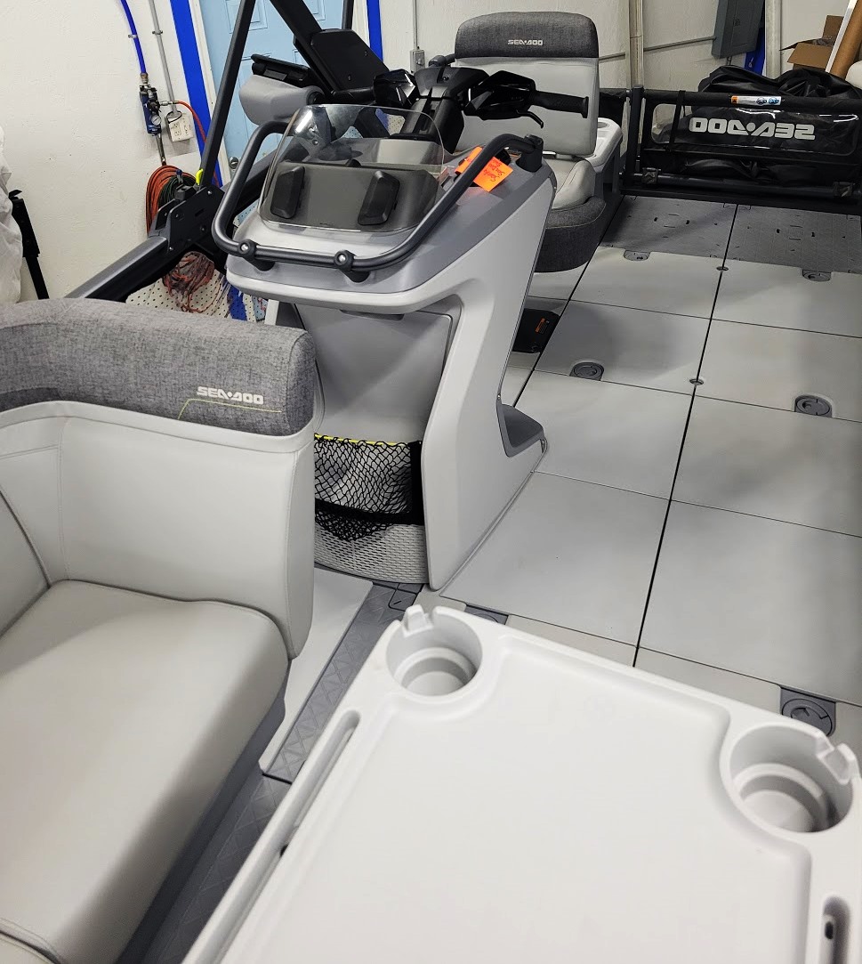 Comfort: Switch bimini top, clear-view side panels, and a 3-position adjustable driver's seat