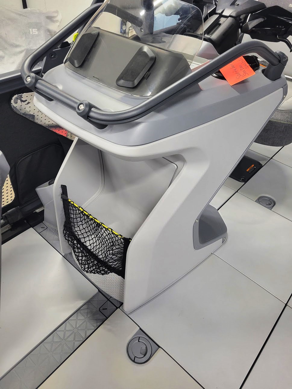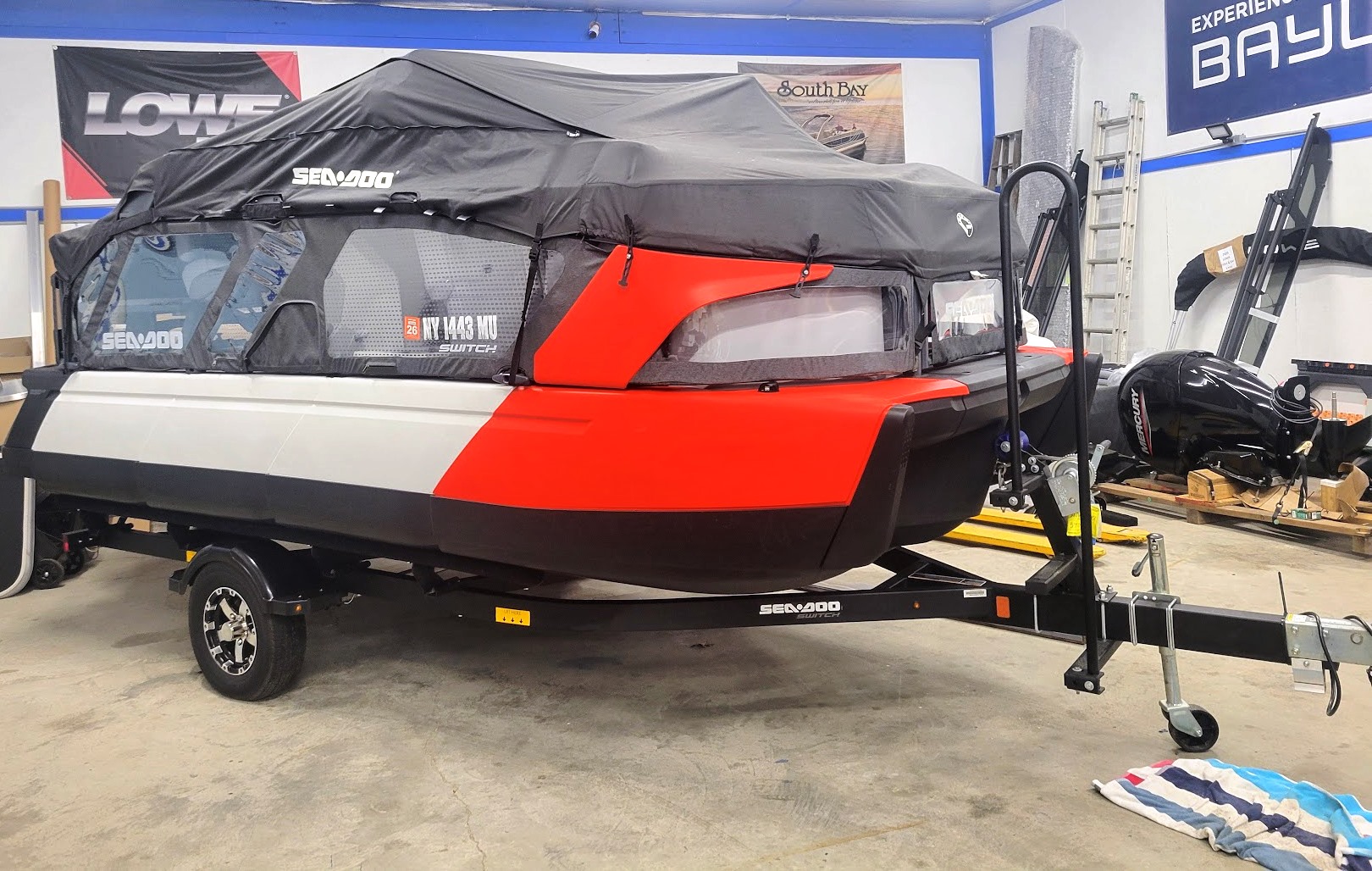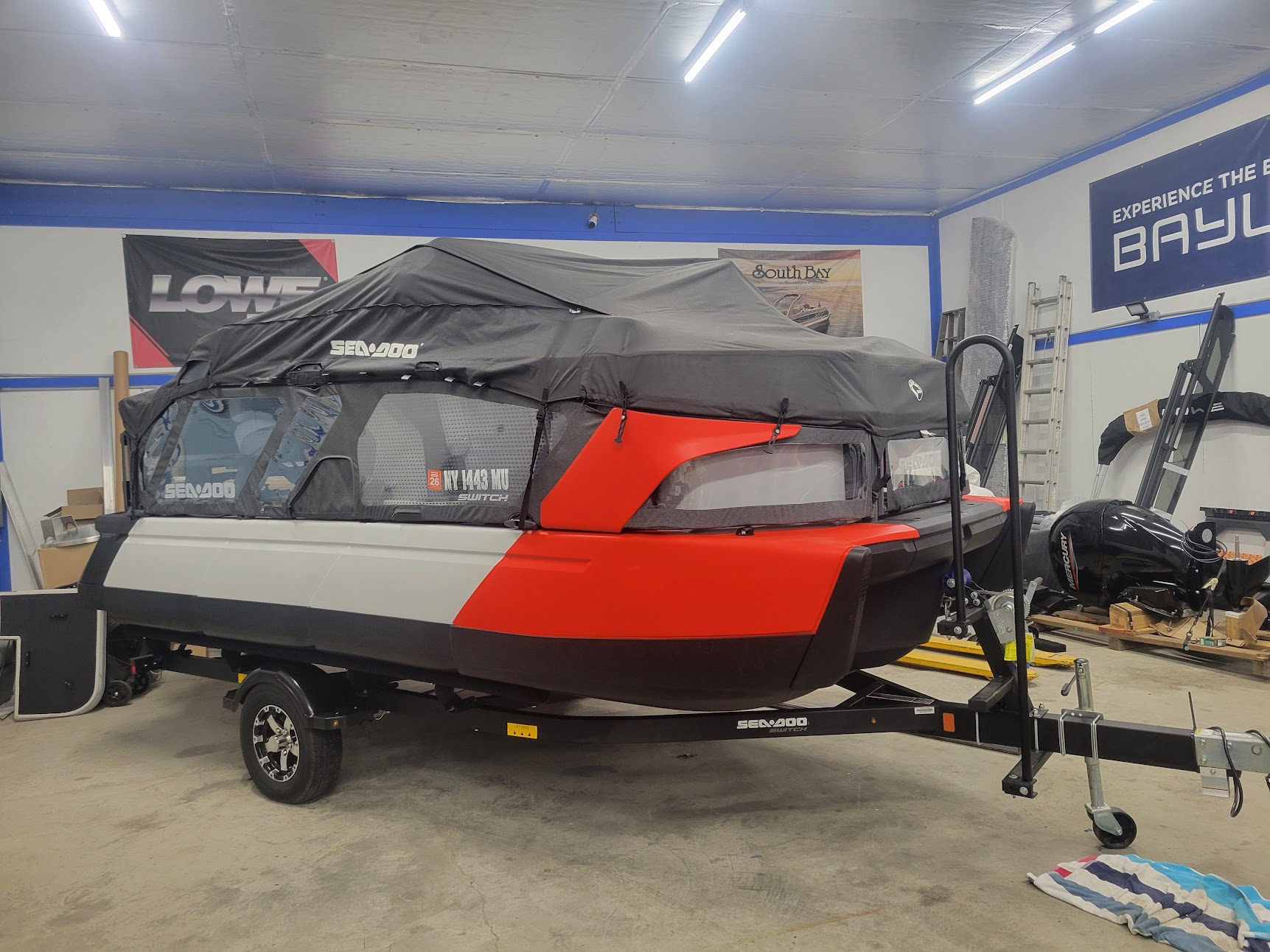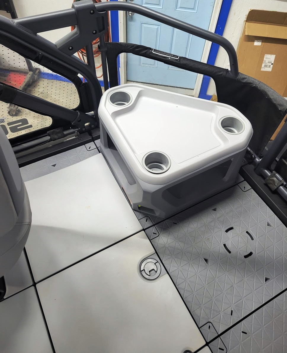 Comfort: Switch bimini top, clear-view side panels, and a 3-position adjustable driver's seat